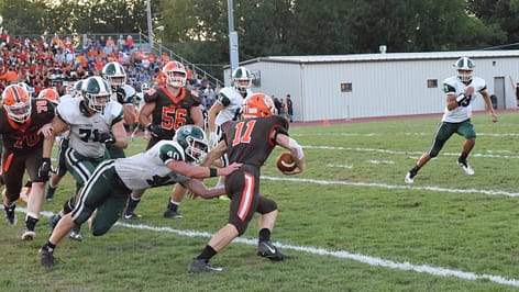 Senior Dakotah Whiteley (11) came into the game in relief of Mayden during this first half run. He would also come into relief for Mayden in the second half, alongside Albert Cross. (Photo: Dave Linn)