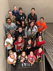 Jade, second to the right on the bottom row, with the rest if the AHS District band students.
