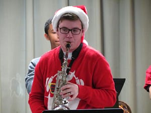 On December 12th, the jazz band went to Kennedy, McKinley, Eisenhower, St. Andrews, and Abilene Middle School. The ensemble played four songs: Go Tell it on a Mountain, O Christmas Tree, We Wish You a Merry Christmas, and Angels We Have Heard on High. Some students had solo breaks, where they performed improvised pieces. The band also played these tunes at the winter band concert on December 16th for the public.