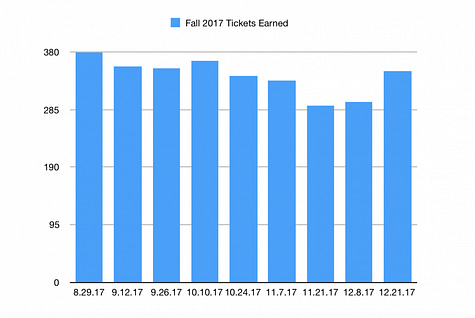 In January 2018, AHS started giving out pink “attendance slips.” These slips were given out to student who missed less than five class periods over a span of two weeks. Absent rates have dropped significantly during the last weekof November and the first week of December. Here is this years attendance slip chart: