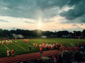 Bordering the green is the track that has raised bright eyed middle track runners into hard nosed high school running warriors. The track that some would remember riding the bus to and competing in field day events during elementary school.