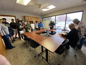 On Tuesday March 26th, 2021, students from Abilene’s sports and entertainment marketing course took to the town to observe live business production. First they traveled to Smart Insurance where they were accompanied by Chuck Scott, executive director for the Dickinson County Economic Development Corporation (DKEDC). Scott explained the mission of the DKEDC and the importance of effective marketing with the success of a business. Essentially, he explained that effective marketing and good representation is the formula for success in business.